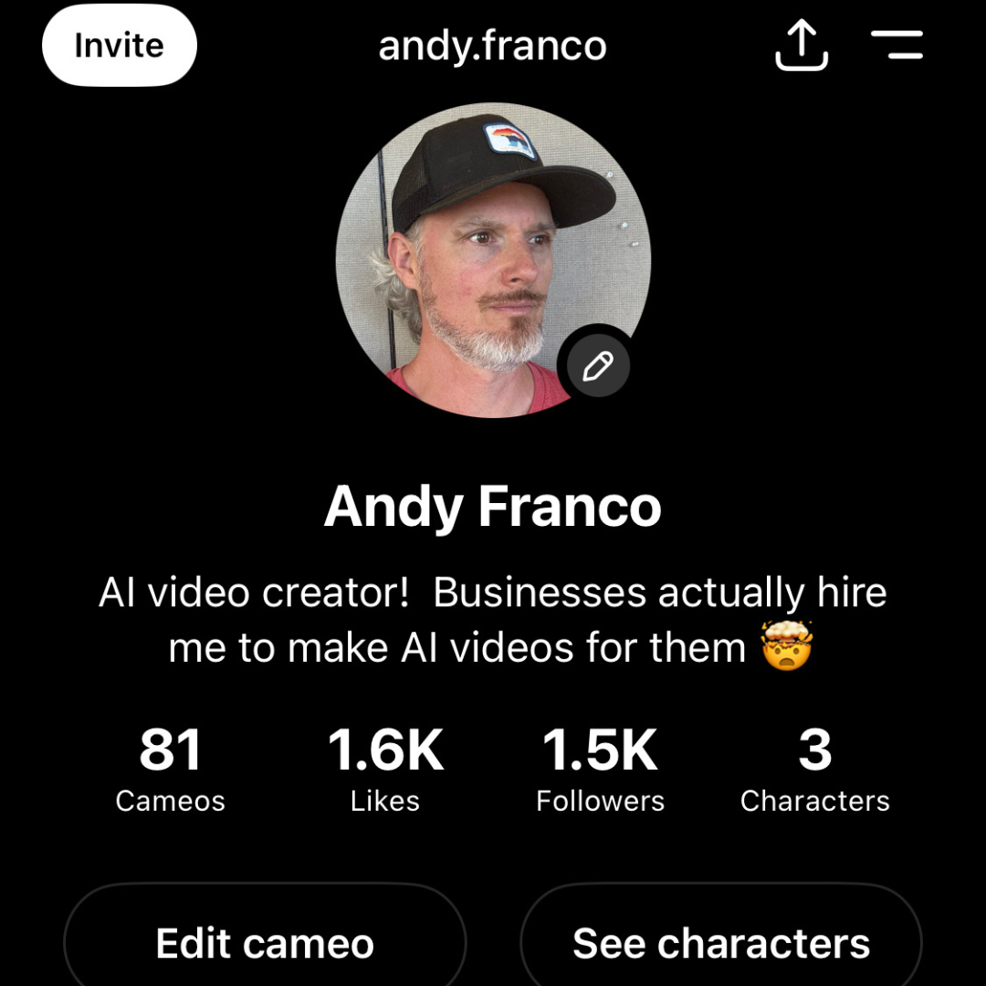 Andy Franco - 20+ years in digital marketing, early Sora adopter (got access week 1)